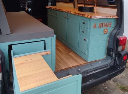 Esta conversão foi especialmente emocionante para nós, os seus donos foram os nossos primeiros guests, na nossa primeira van (Vanokas) e passados 3 anos estes nossos amigos pediram-nos para convertemos uma Volkswagen t4 teto alto à imagem da nossa primeira Campervan.