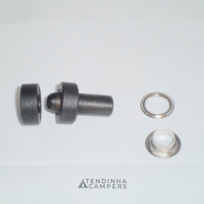 Utilidade: Permite perfurar e selar o ilhós no material para evitar que este se rasgue com o uso.