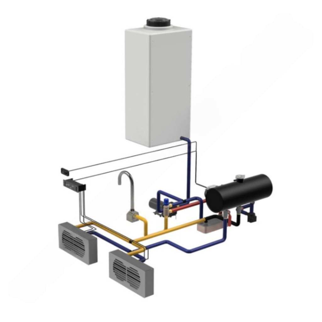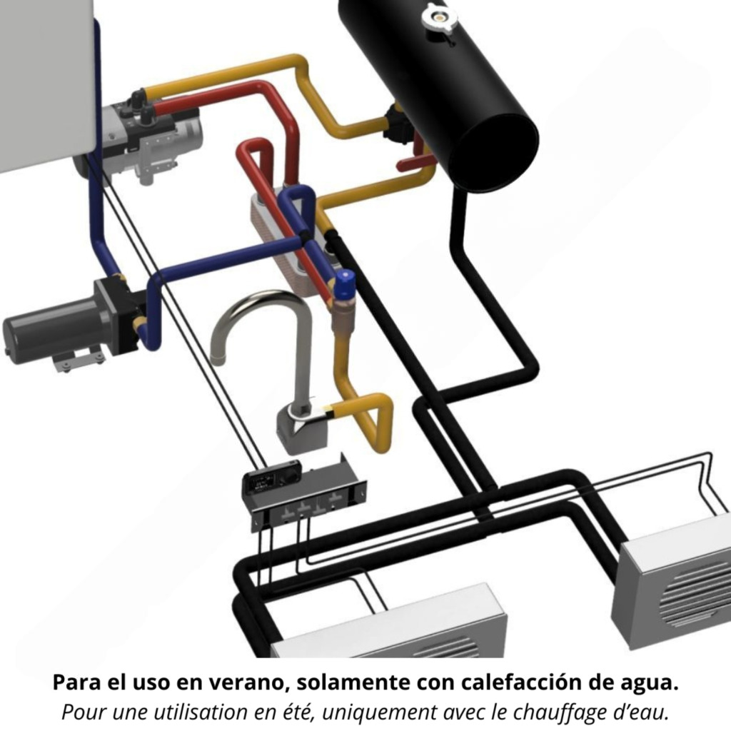 Uma solução de aquecimento Autoterm completa que permite o aquecimento de 1 a 2 divisões com 2 permutadores de calor Fancoil.