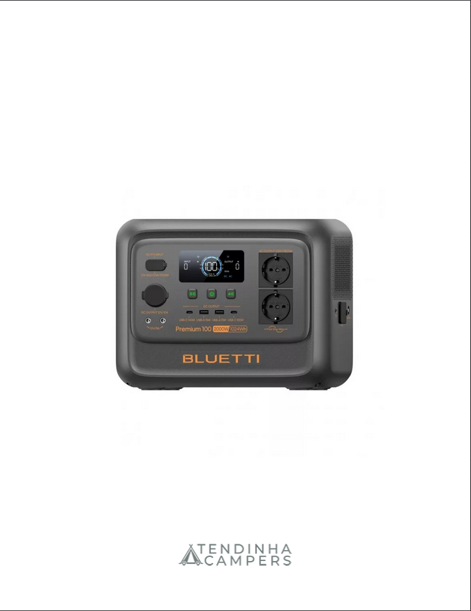 Potência avançada com a BLUETTI Elite Premium 100 V2 2000W 1.024Wh A versão Premium do reconhecido modelo Elite 100 V2 eleva o rendimento a um nível superior, integrando uma potência de saída aumentada até 2.000W — mais 11% do que a versão standard — o que garante maior autonomia, melhor resposta energética e versatilidade total para qualquer cenário, desde viagens e acampamentos até emergências ou trabalhos de campo.