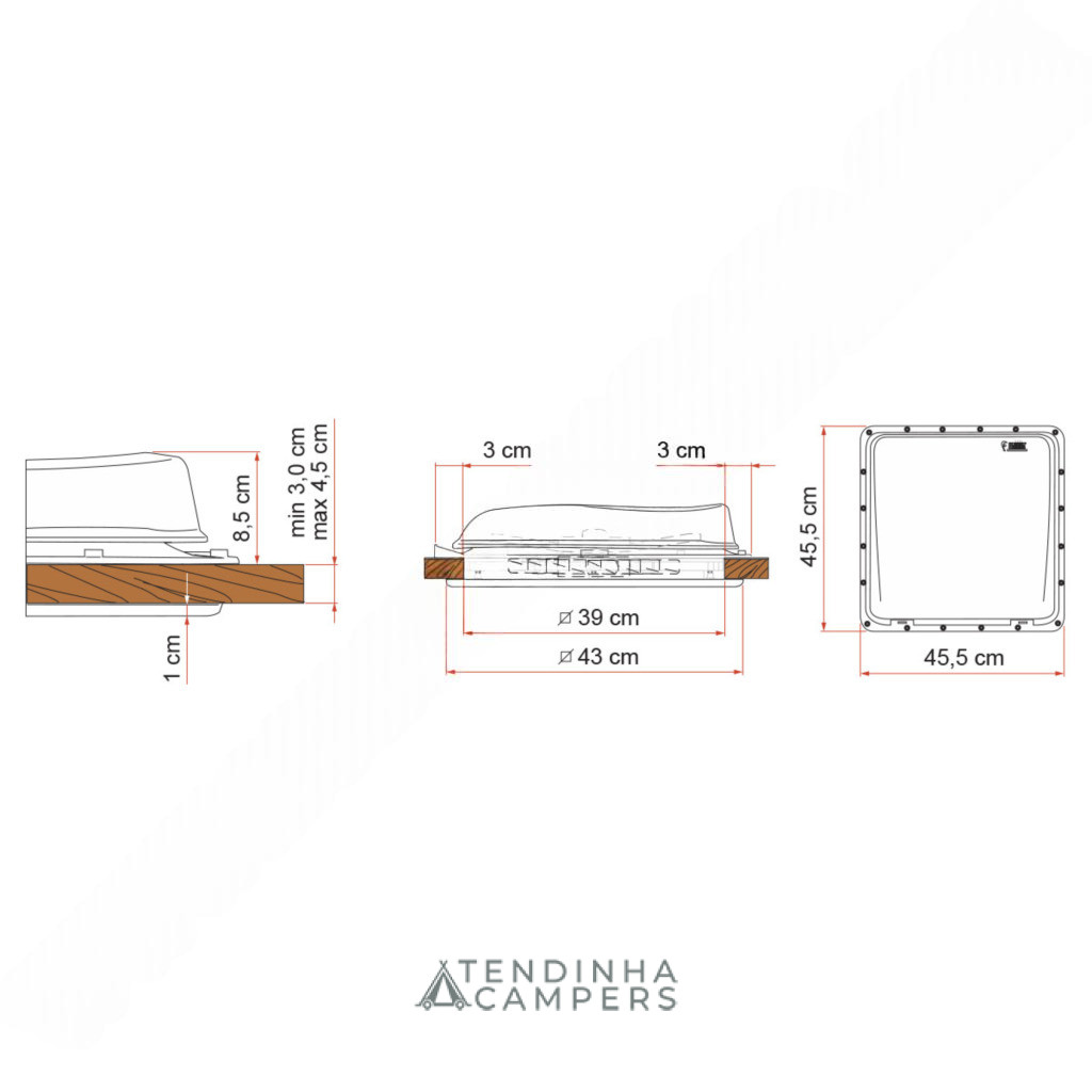 Aviso: Verifique a espessura do seu tejadilho. Se for superior a 4,5 cm, não se esqueça de adquirir o suplemento de extensão Fiamma.