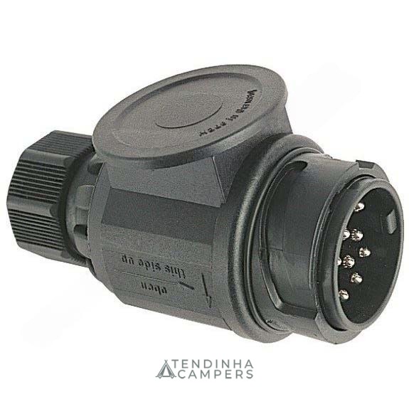 Conector macho 13 pinos, para ligar à base fêmea de 13 pinos do carro.