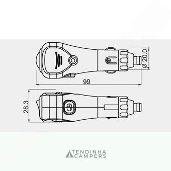 Conector de isqueiro com fusível 15Amps máx. 12V DC, com interruptor.