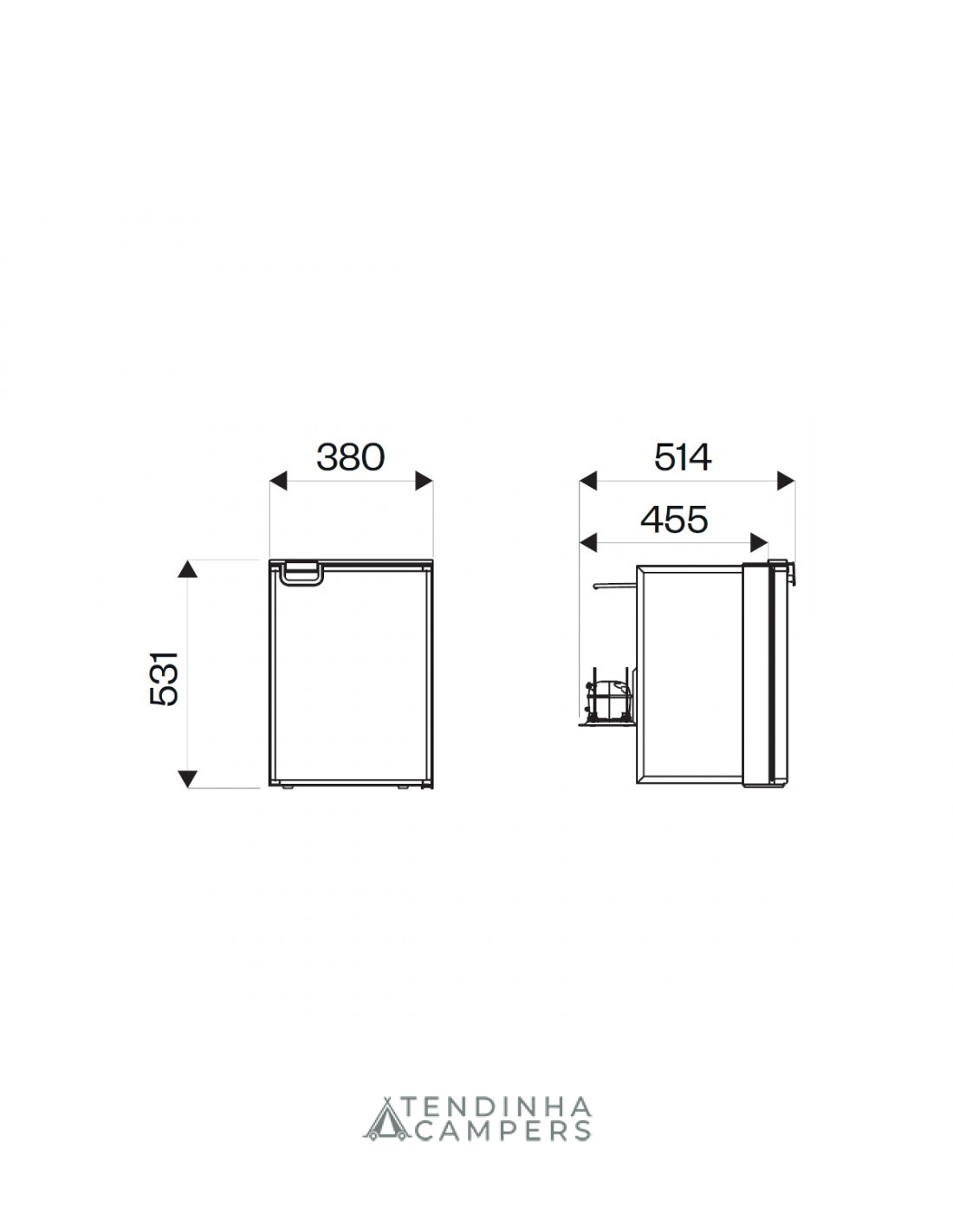 Dimensões: 530 × 380 × 455 mm