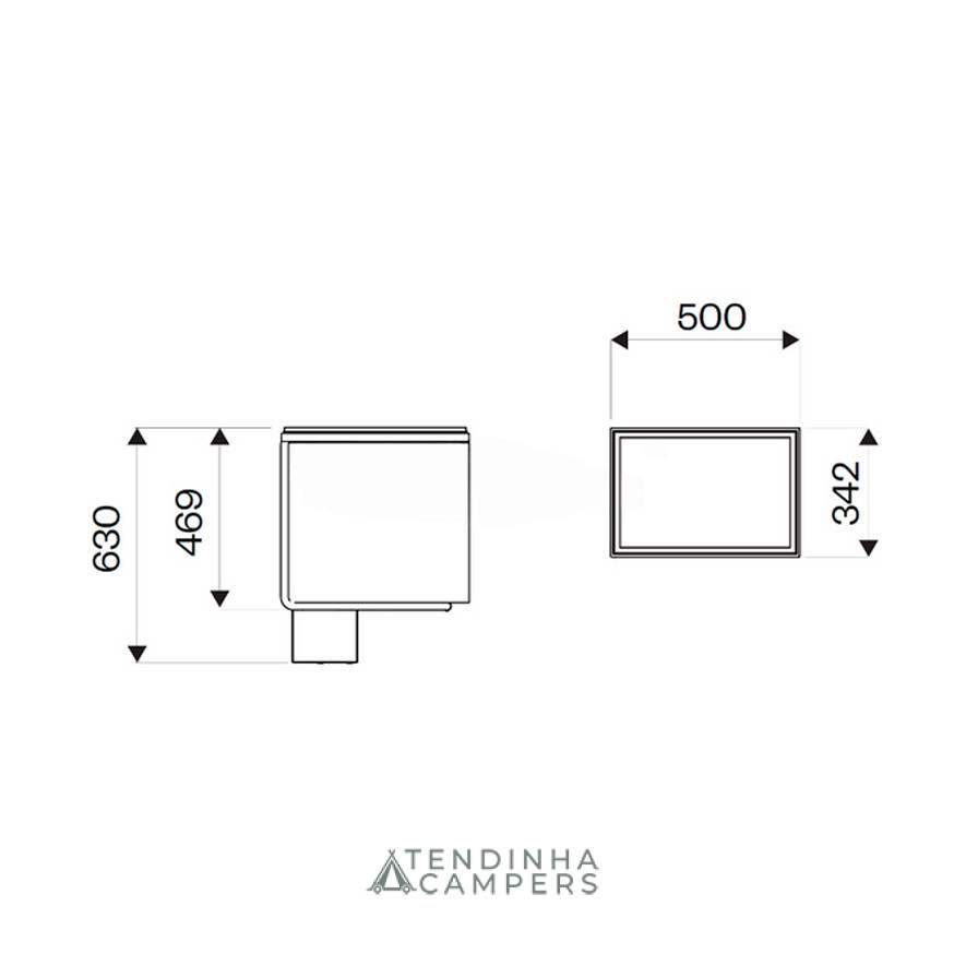 Dimensões: 630 x 342 x 500 mm (A x L x C).