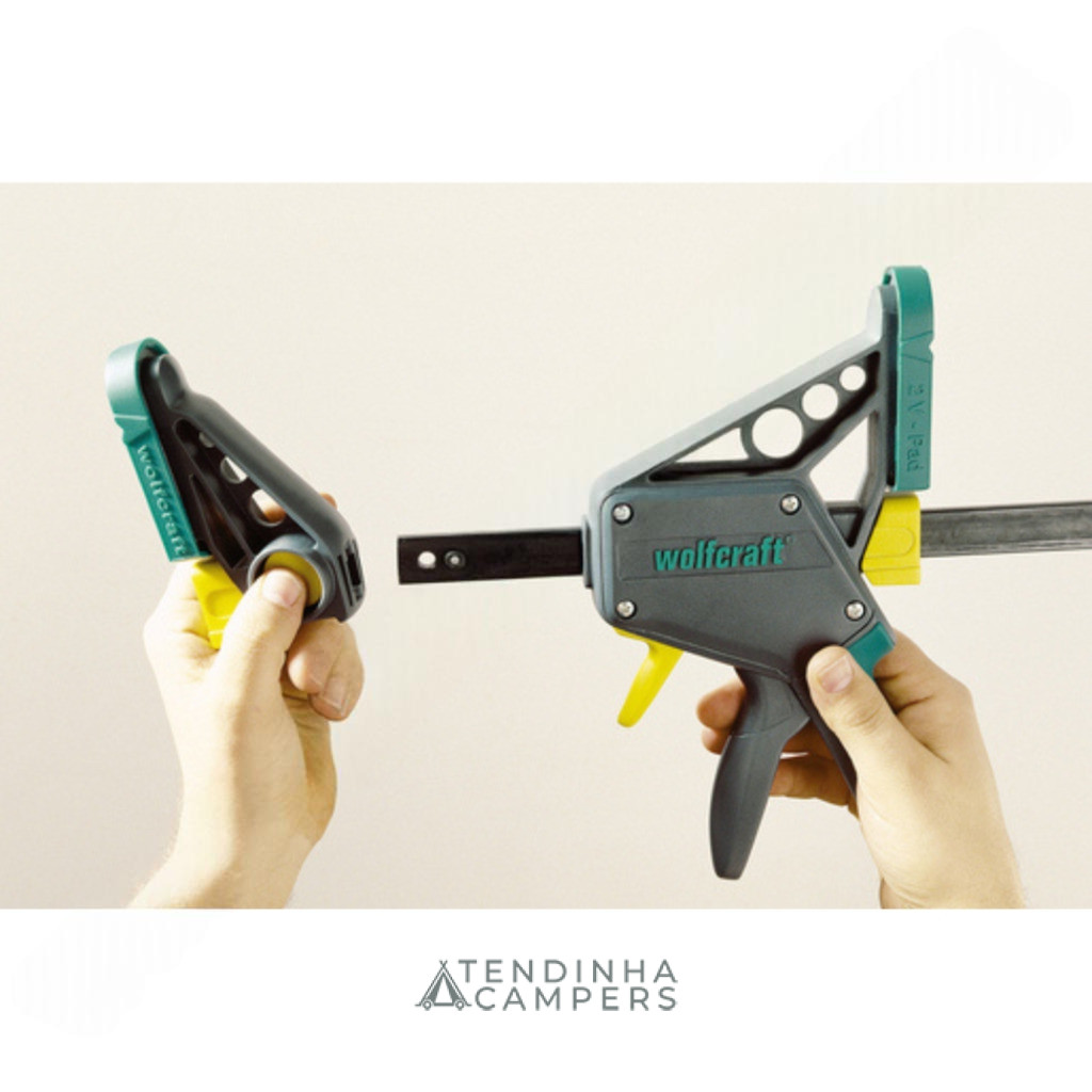 Ideal para trabalhos de colagem, os espaçadores deslocáveis garantem o posicionamento simples e preciso do grampo, servindo também como base de apoio para a peça. As mordaças possuem uma ranura em cruz prática para fixar tubos e objetos redondos. O sistema inteligente permite não só apertar, mas também abrir o grampo com uma só mão. Com o premir de um botão (amarelo), converte-se facilmente num expansor, bastando inverter a posição da mordaça.