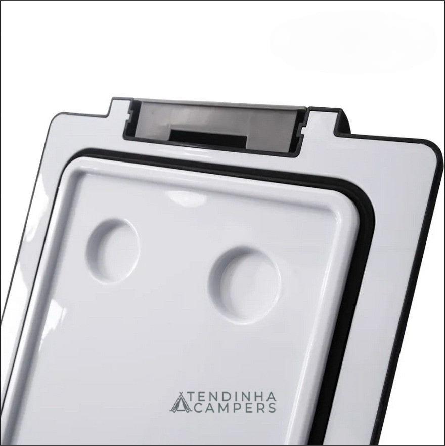 Design Robusto: Carcaça resistente a impactos, pegas laterais reforçadas e tampa com fecho seguro.