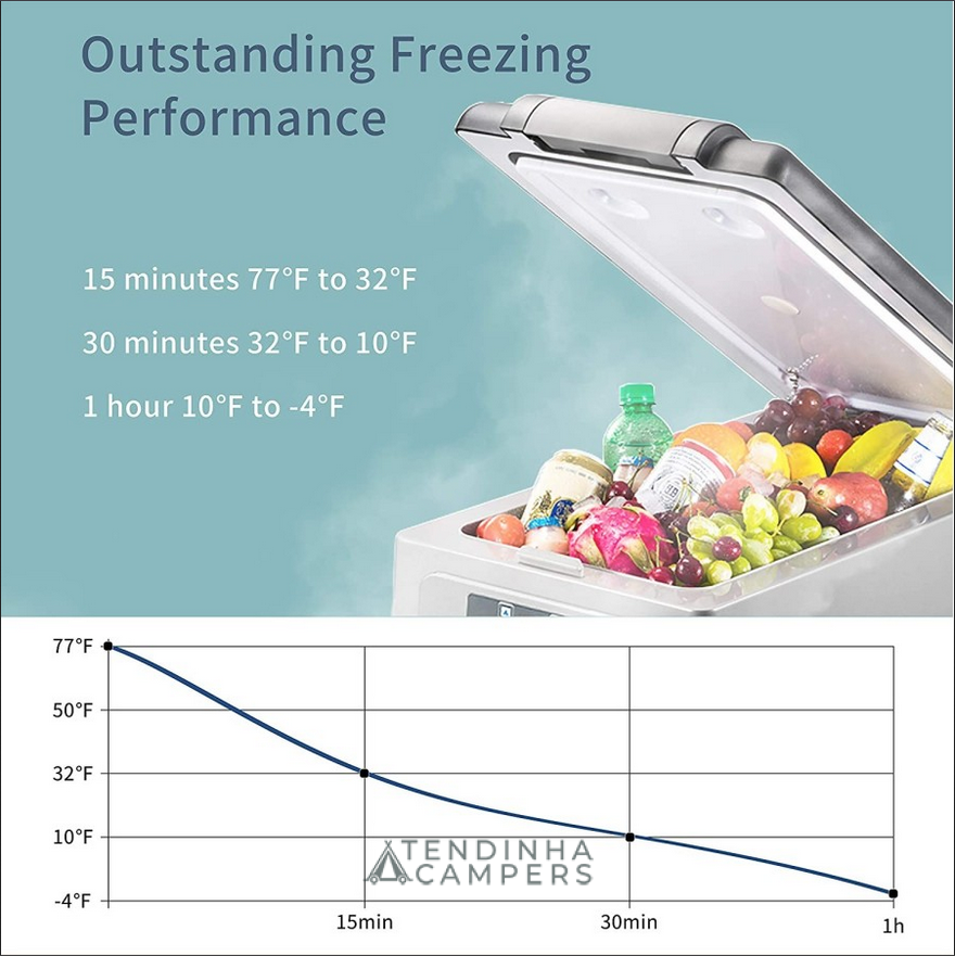 A Alpicool CF45 é uma das arcas portáteis mais equilibradas da gama CF, ideal para quem necessita de armazenamento generoso em viagens longas, carrinhas camper, expedições 4×4 ou barcos. Destaca-se pela sua refrigeração real por compressor, elevada eficiência energética e construção com materiais de alta resistência.