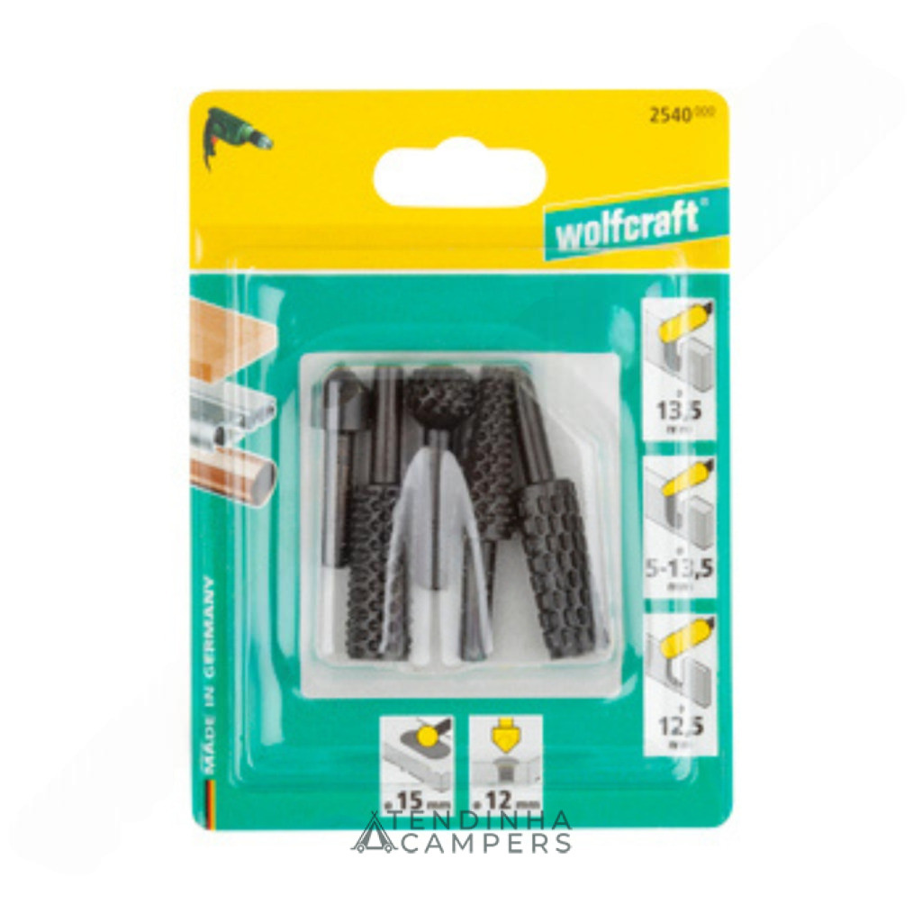 O jogo de grosas e escareador de 5 peças é ideal para a preparação de cavidades e reentrâncias. O encabadouro cilíndrico permite uma utilização rápida na bucha do berbequim. Graças à sua elevada capacidade de desbaste, consegue-se um avanço de trabalho muito rápido. O jogo é fabricado em aço de ferramentas sólido e, por isso, é particularmente duradouro.