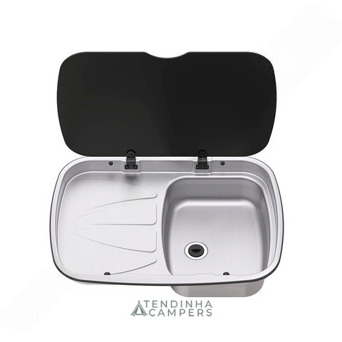 LAVA-LOIÇA INOX COM ESCORREDOR E TAMPA DE VIDRO (ESQUERDA)