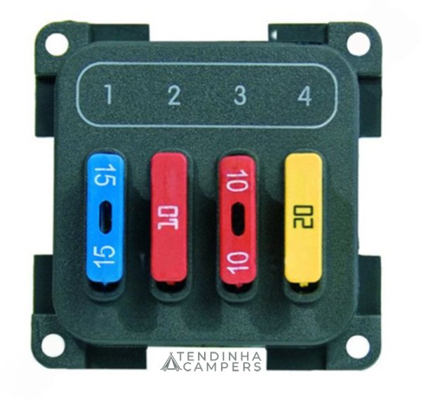 Inclui 4 fusíveis (1x15amp., 2x10amp. e 1x20amp.).