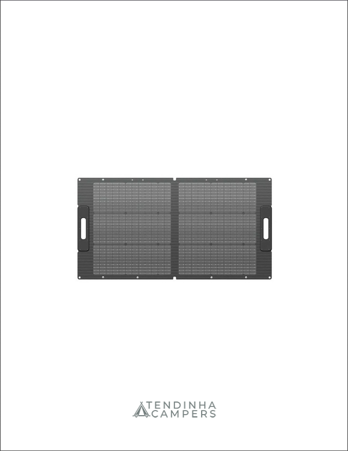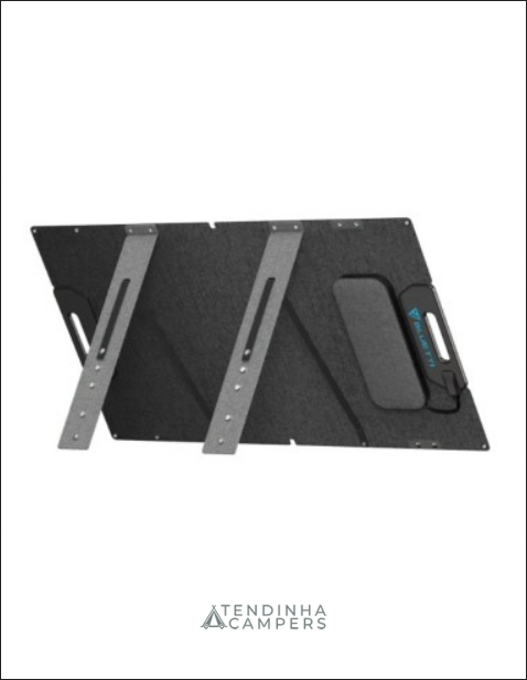 O seu design dobrável e portátil facilita o transporte e o armazenamento em qualquer veículo preparado. Uma vez aberto, o painel instala-se facilmente graças aos seus suportes integrados, permitindo ajustar o ângulo de captação solar para maximizar a produção energética durante todo o dia.