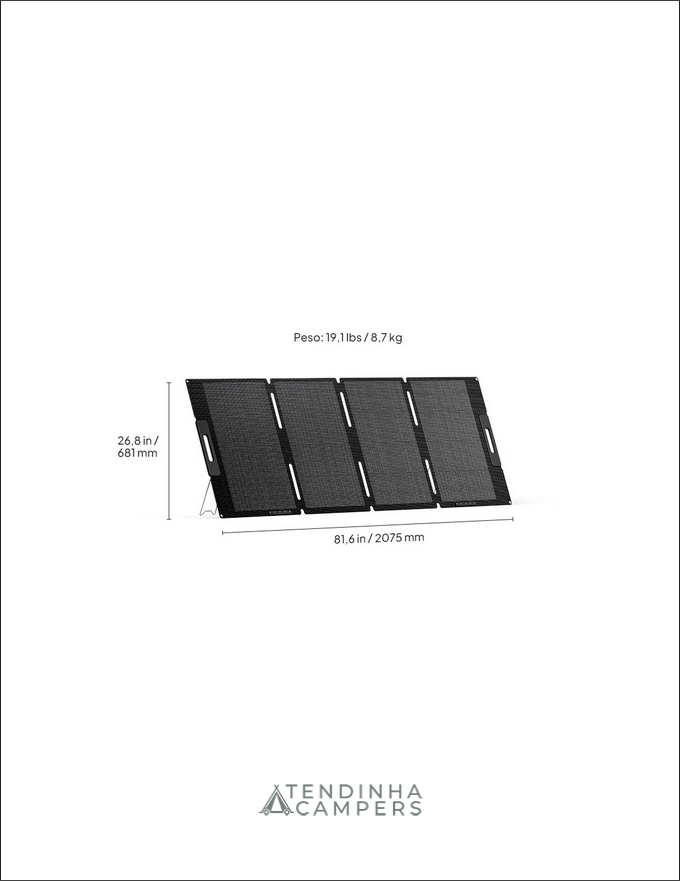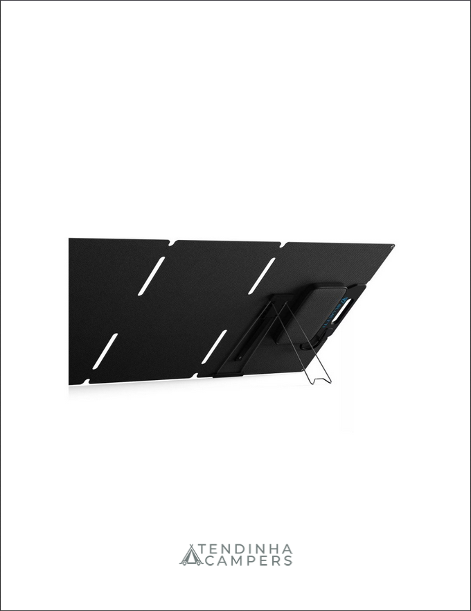 O seu design dobrável facilita o transporte e a instalação, permitindo montar o painel em questão de segundos e orientá-lo para o sol para maximizar a captação energética.