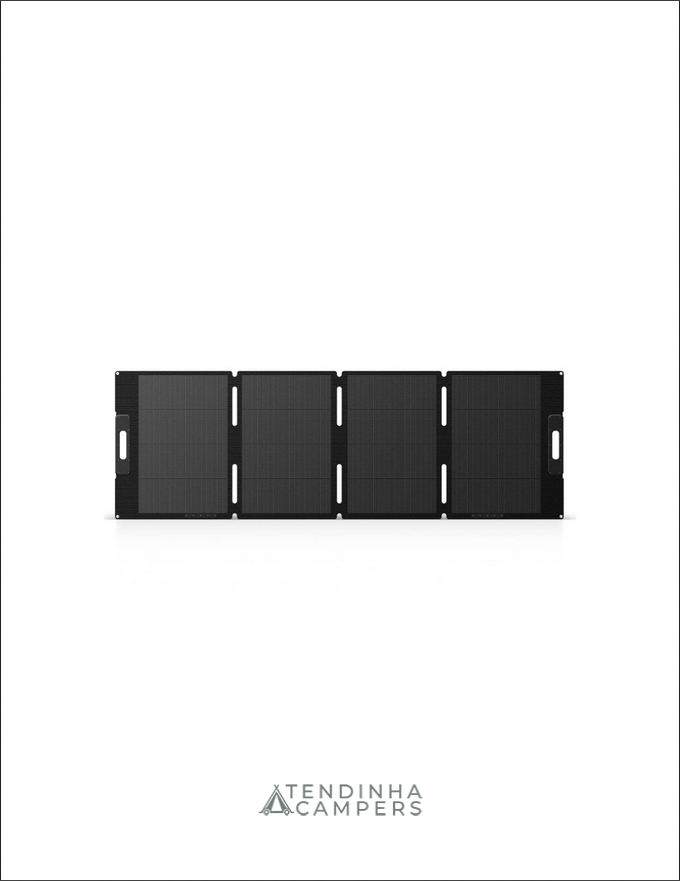 A estrutura do painel solar portátil BLUETTI 200W foi pensada para oferecer o máximo conforto. O seu formato dobrável permite guardá-lo facilmente no interior da camper ou autocaravana quando não está a ser utilizado.