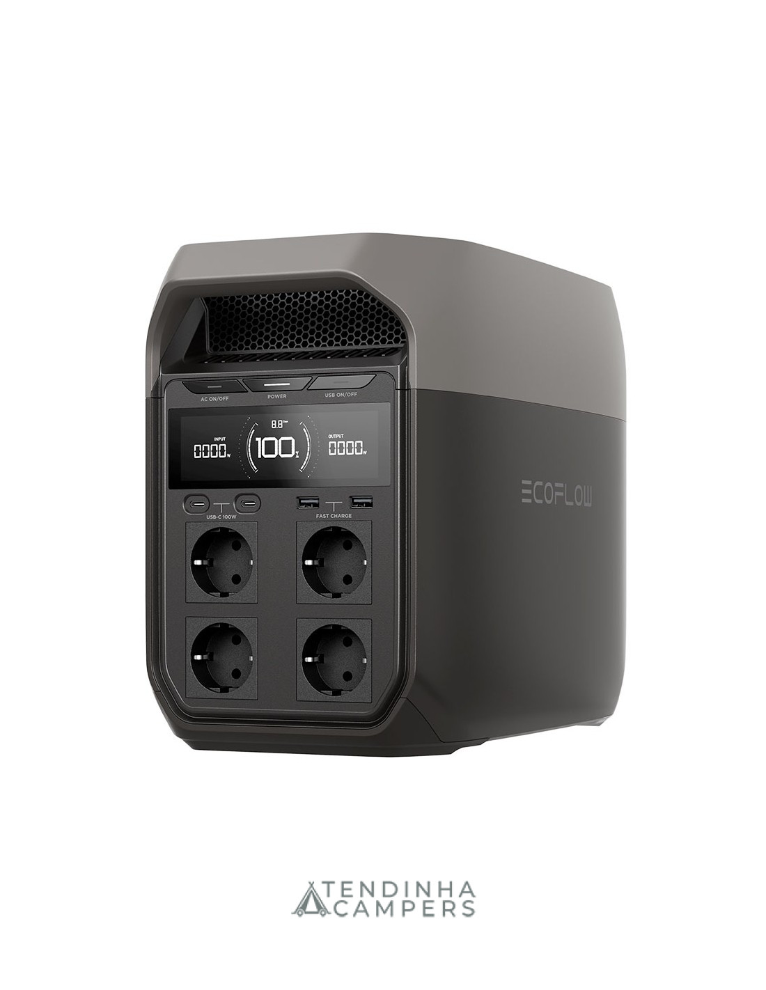 Saídas: 4x CA, 2x USB-C (100W), 2x USB-A, DC5521 e Isqueiro.