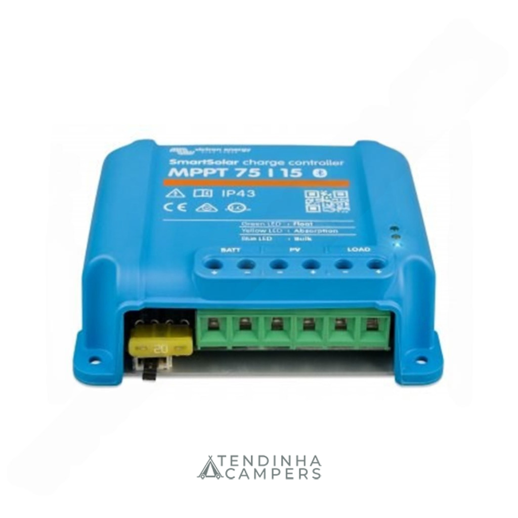 Com o controlador Victron SmartSolar MPPT 75/15, pode desfrutar de uma corrente de carga até 15 Amps e de uma tensão fotovoltaica até 75 volts.