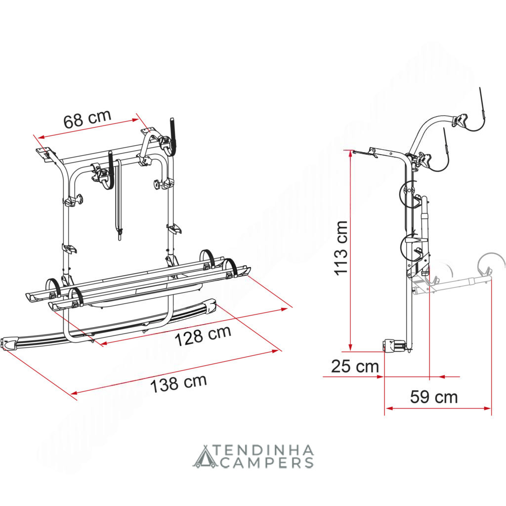 Sistema de Fixação: Inclui um prático sistema de tensionamento inferior que permite fixar o Carry-Bike ao veículo de forma totalmente segura.