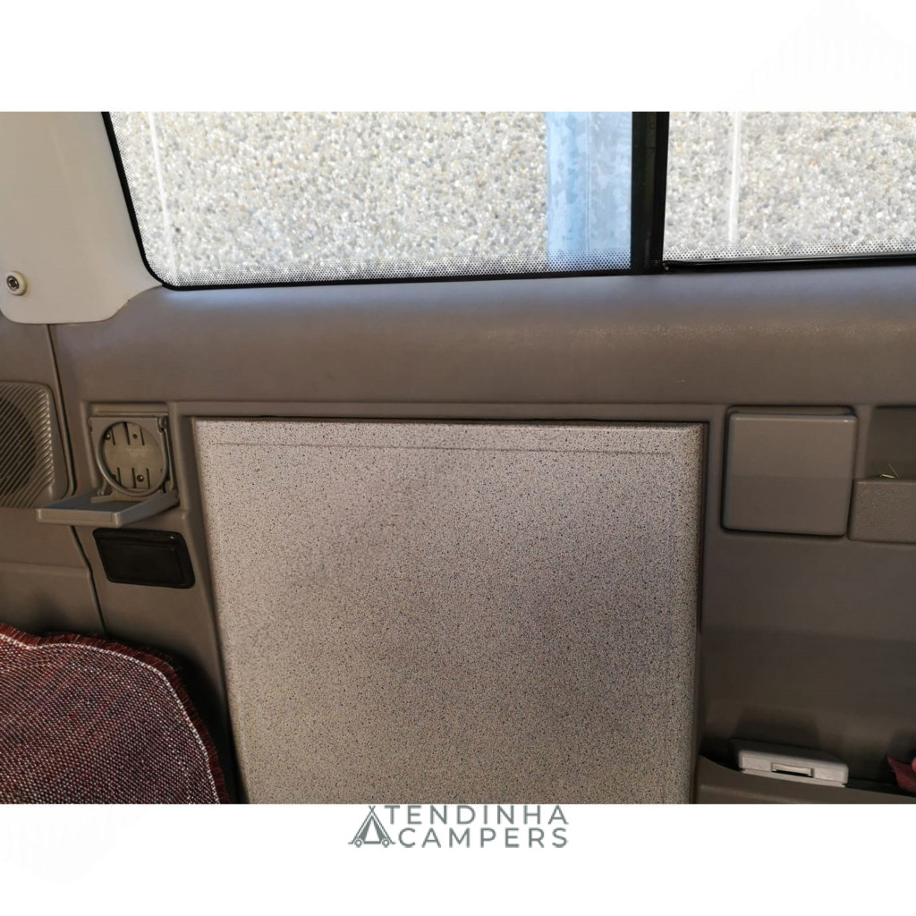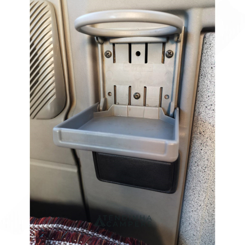 Pode ser dobrado quando não está a ser utilizado, sobressaindo muito pouco. Totalmente compatível com o porta-copos das VW T3 e T4 Multivan.