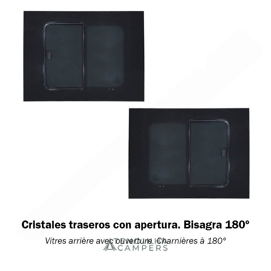Vidro da 1ª fila escurecido (direita) ,Vidro da 1ª fila escurecido (esquerda) ,Vidro da 1ª fila transparente (esquerda) ,Vidros das 2 portas traseiras (dobradiça 180º) sem abertura ,Vidros das 2 portas traseiras (dobradiça 270º) sem abertura ,Vidros das 2 portas traseiras (dobradiça 180º) com abertura |