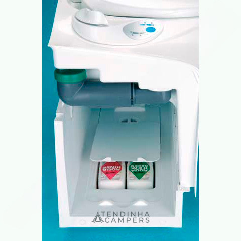 WC com assento confortável, plástico leve, durável e de alta qualidade. Porta de resíduos à esquerda ou à direita, dependendo da posição sentada no WC.